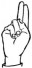 На ћирилици написано ДУШАН КЉУКОВНИЦА састоји се из 15 слова [?]. Исписано ћириличном једноручном азбуком за глувонеме: